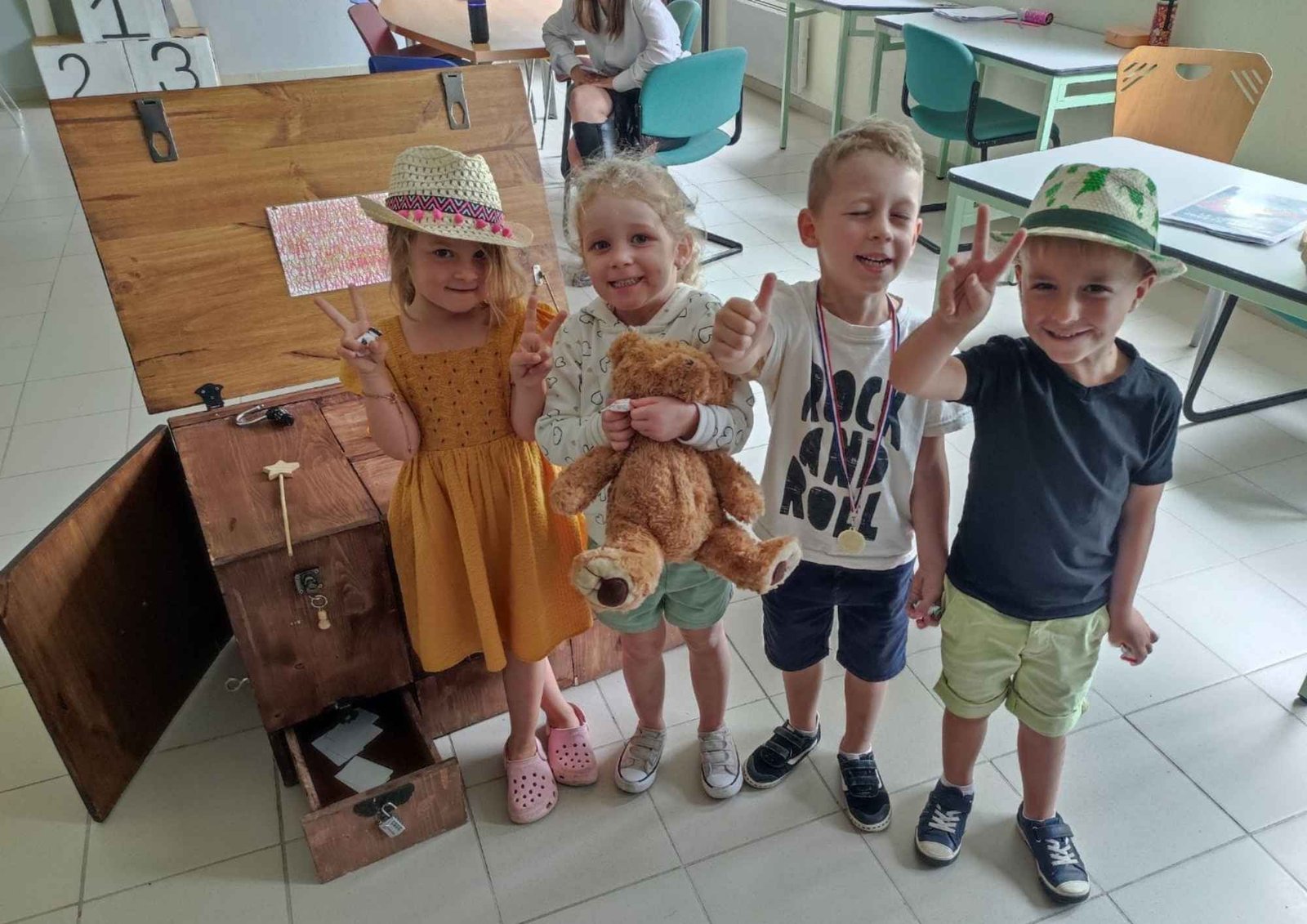 Ici, pas de chronomètre stressant ni d’énigmes complexes : les enfants explorent, manipulent, observent et jouent ensemble pour percer le secret d’un coffre mystérieux rempli de jouets enchantés.